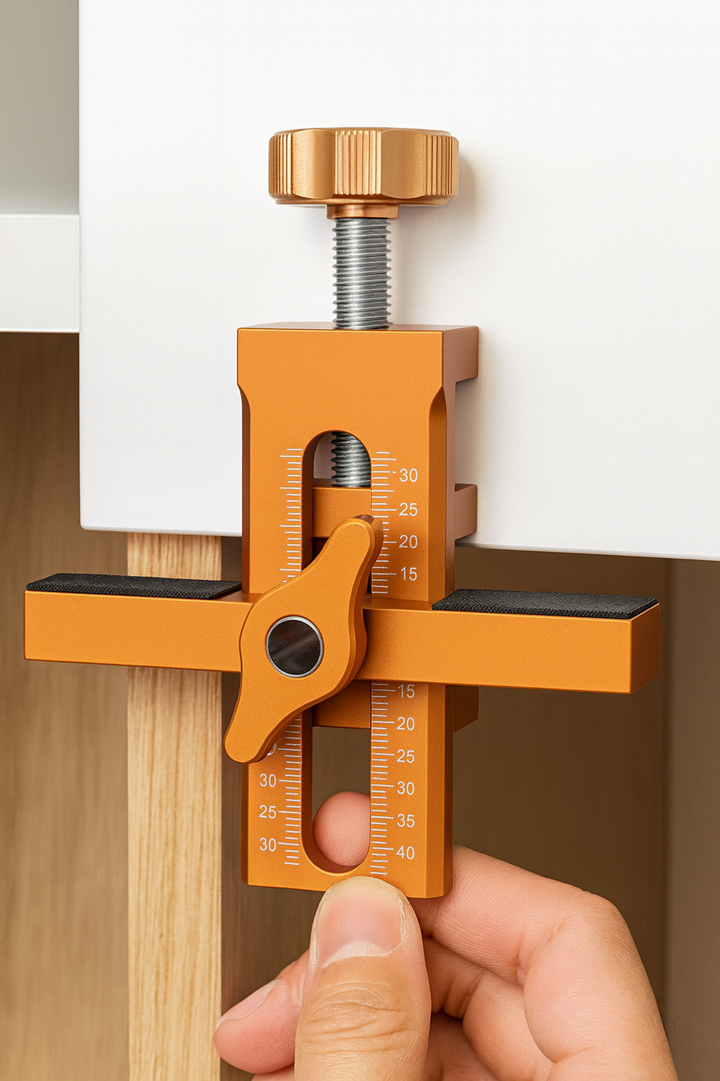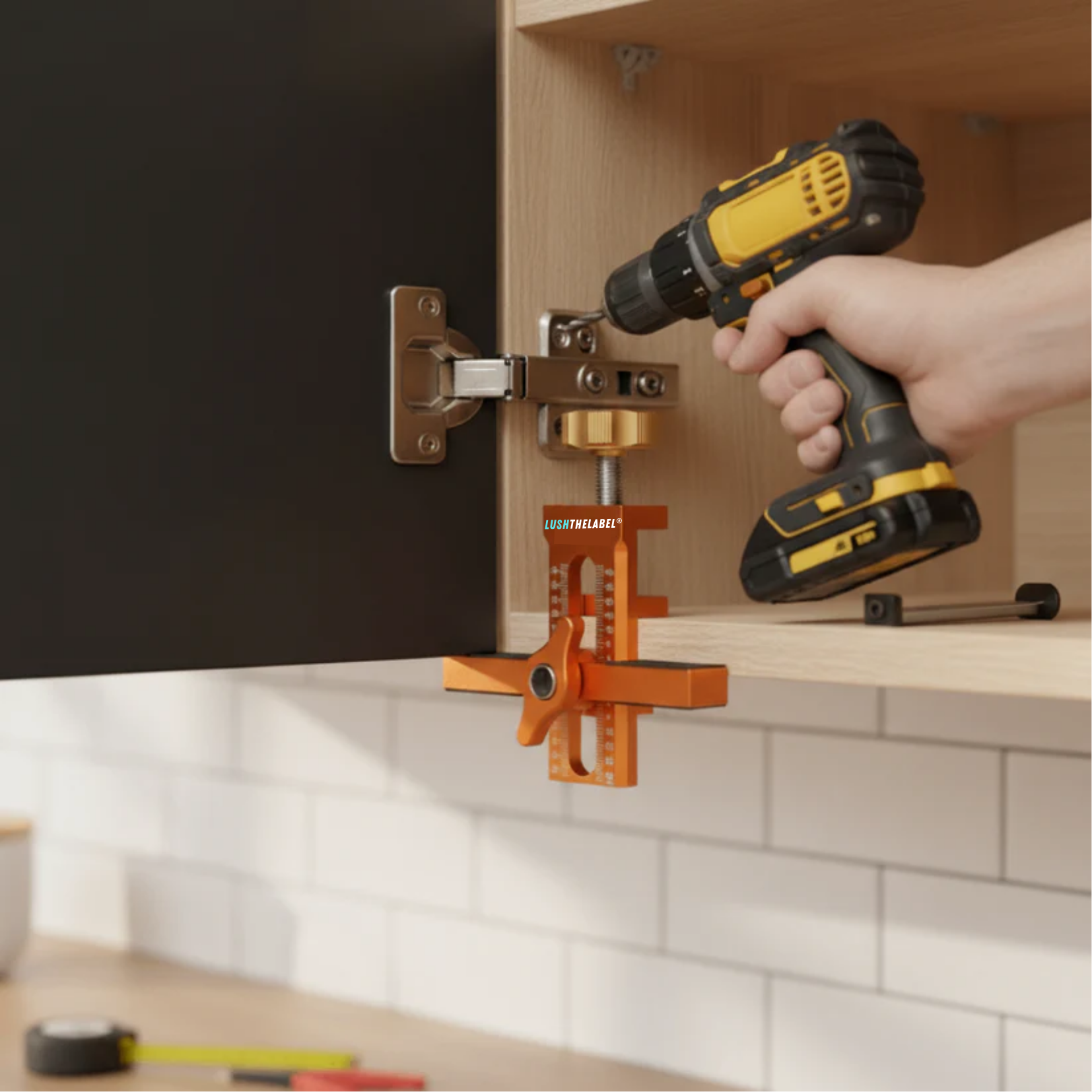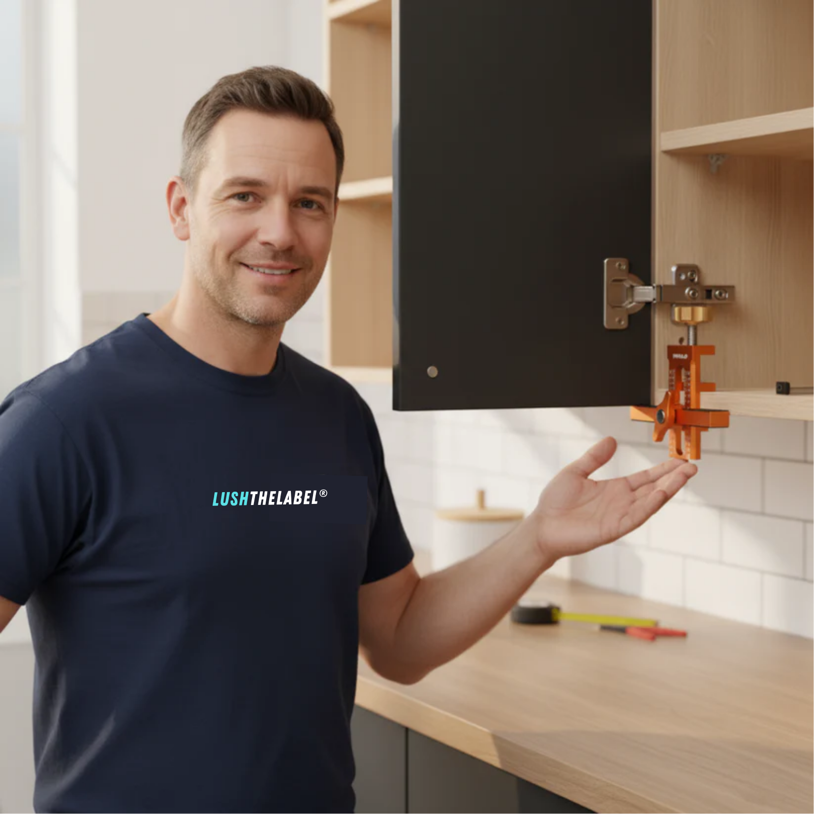 Die Lush 2-in-1-Montagevorrichtung für Schranktüren ändert das. Mit einem Ein Klick Verriegelungsmechanismus und einer präzisen Höhenverstellung können Sie Schranktüren alleine stützen, ausrichten und befestigen und dennoch professionelle Ergebnisse erzielen.