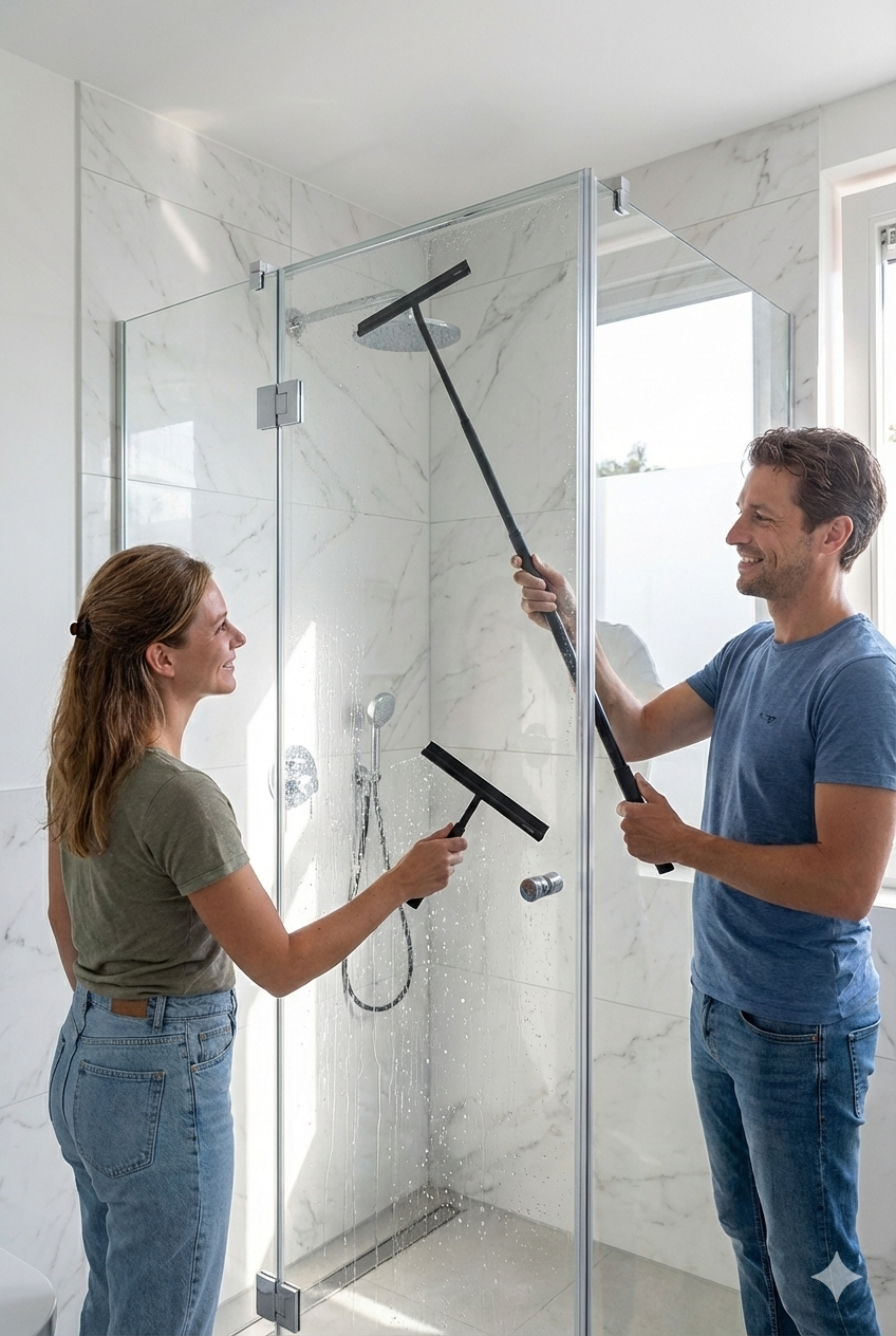 berichten, dass sie weniger Zeit beim Badputz brauchen, weil Wasser und Rückstände sofort entfernt werden.