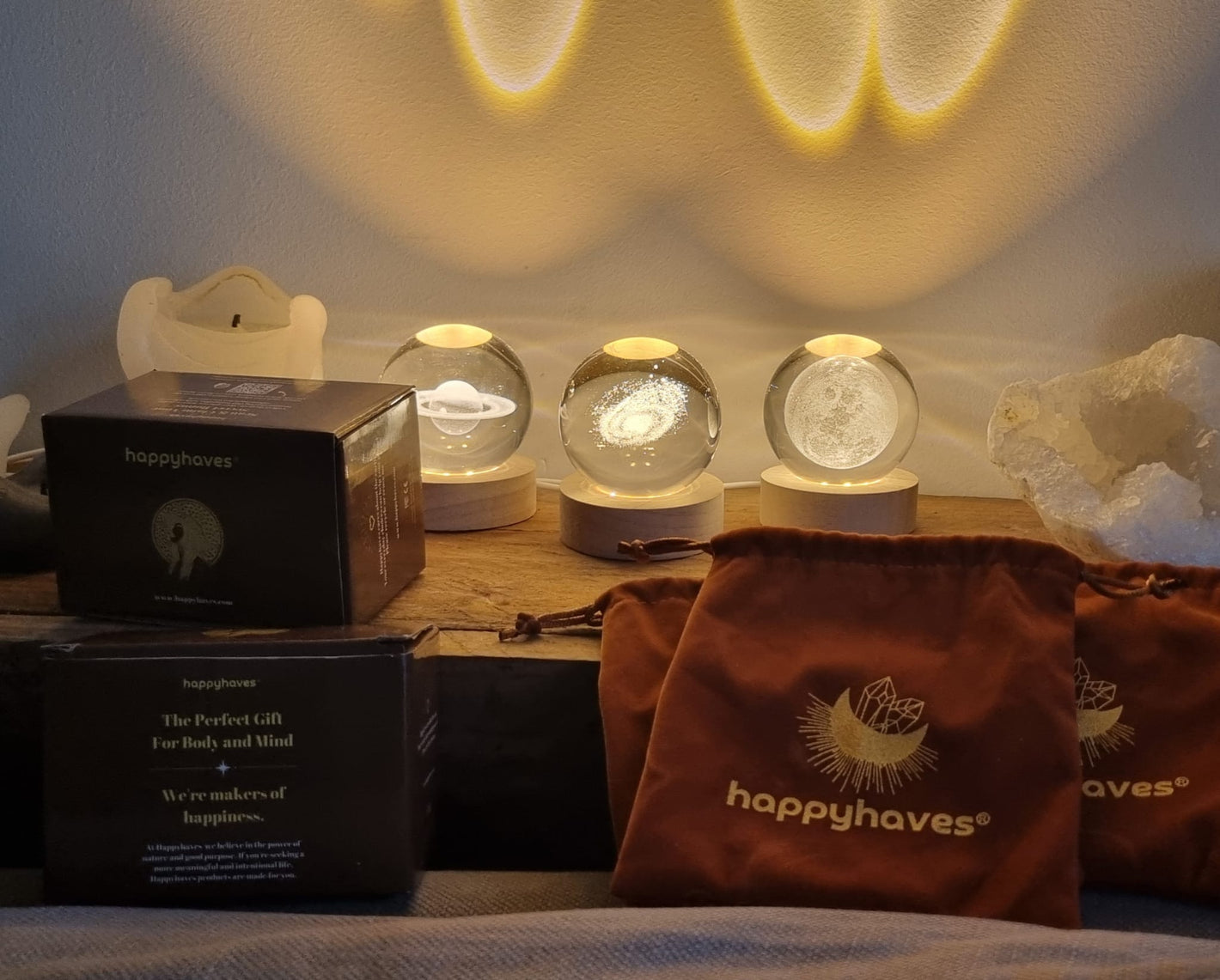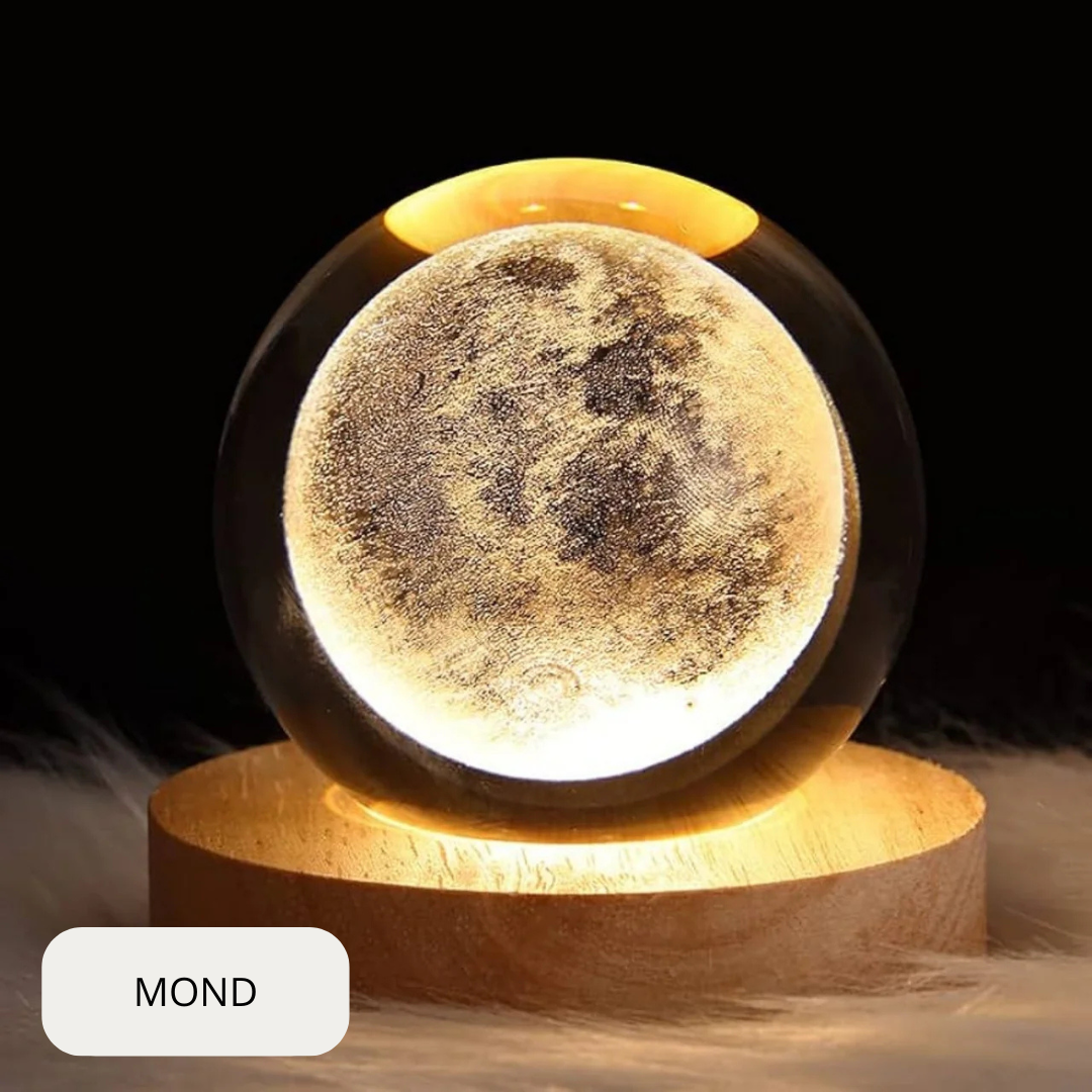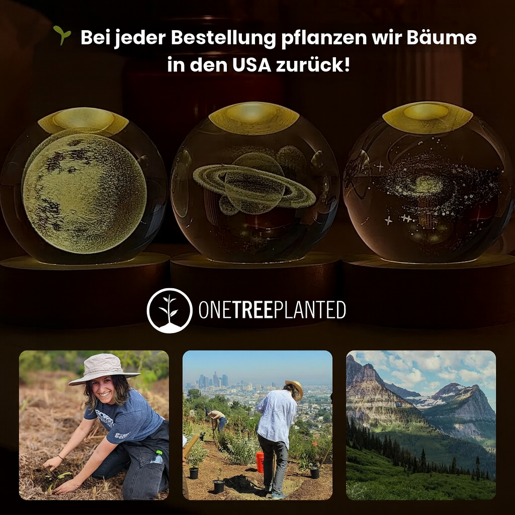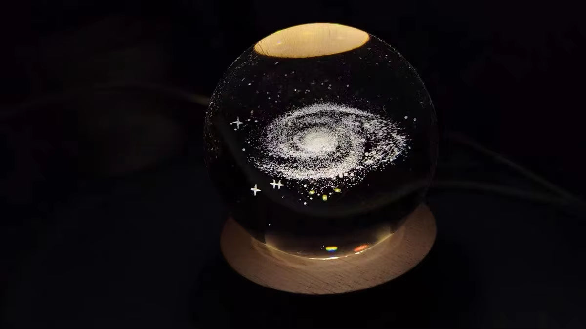 Jede Kristallkugel ist präzise lasergraviert, sodass die Krater des Mondes, die Ringe des Saturns und die Wirbel der Galaxie aus jedem Blickwinkel scharf, tief und realistisch wirken.