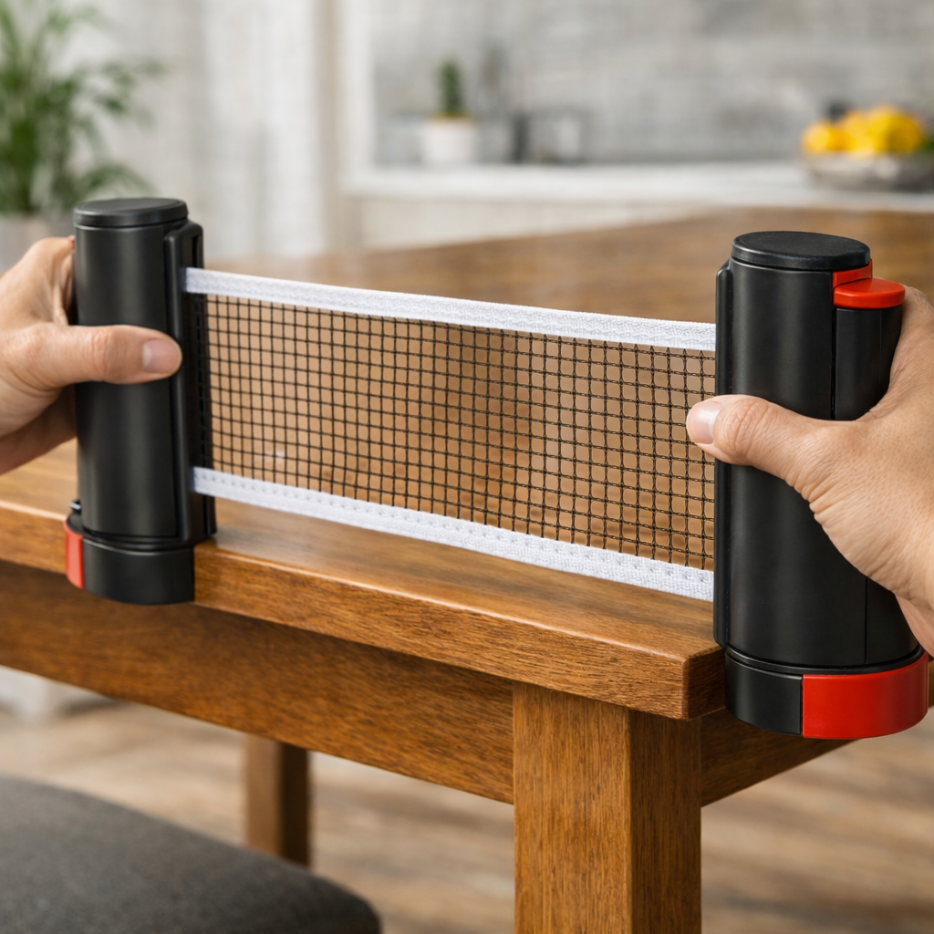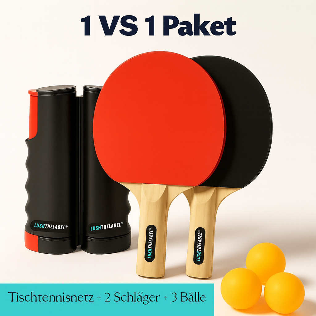 Mit dem Lush Tischtennis-Set befestigen Sie das Netz, schnappen sich einen Schläger und verwandeln jeden Tisch sofort in eine Pingpong-Spielfläche in der Küche, im Büro, im Ferienhaus, wo auch immer Sie möchten. Kein großer Tisch, kein Werkzeug, keine Ausreden.