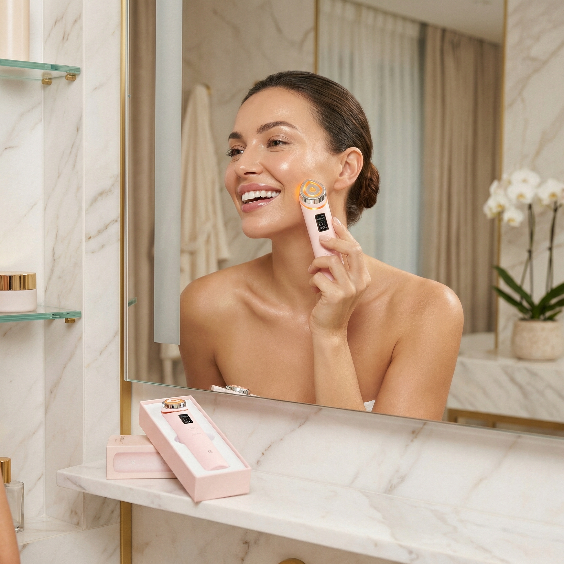 Der GlassGlow Pro nutzt moderne Rotlichttherapie und weitere Pflegefunktionen, die in der professionellen Hautpflege seit Jahren eingesetzt werden. So können Sie Ihre Haut zu Hause gezielt unterstützen und Ihr Hautbild sichtbar frischer und ebenmäßiger wirken lassen.