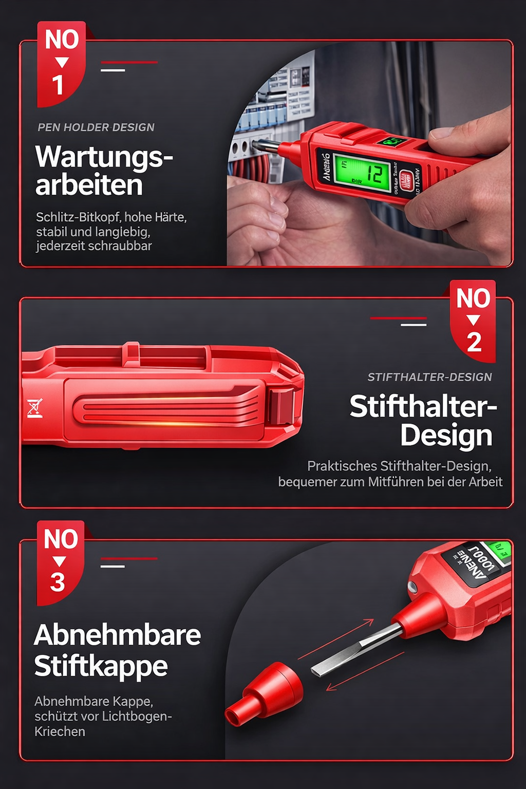 ✅Elektrik: Entwickelt für Elektriker, die freihändige, zuverlässige Messwerte benötigen und gleichzeitig in beengten elektrischen Umgebungen sicher arbeiten müssen.