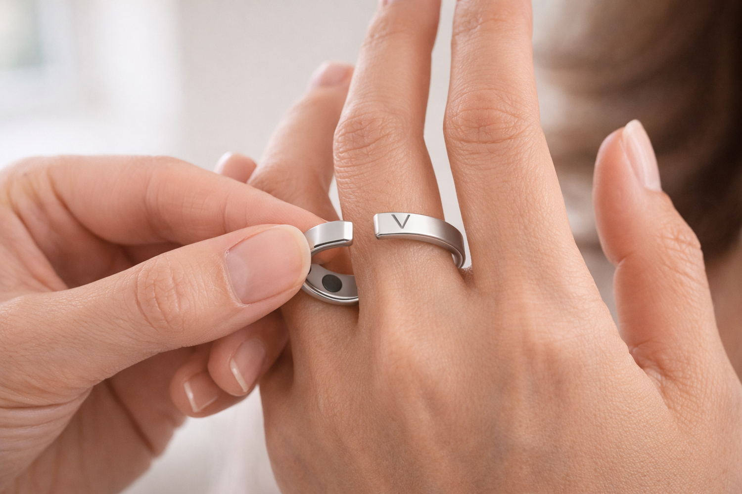 Vayro ist ein verstellbarer magnetischer Wellness-Ring, der für das tägliche Tragen konzipiert ist. Er verfügt über 4 fest eingebaute Magnete.