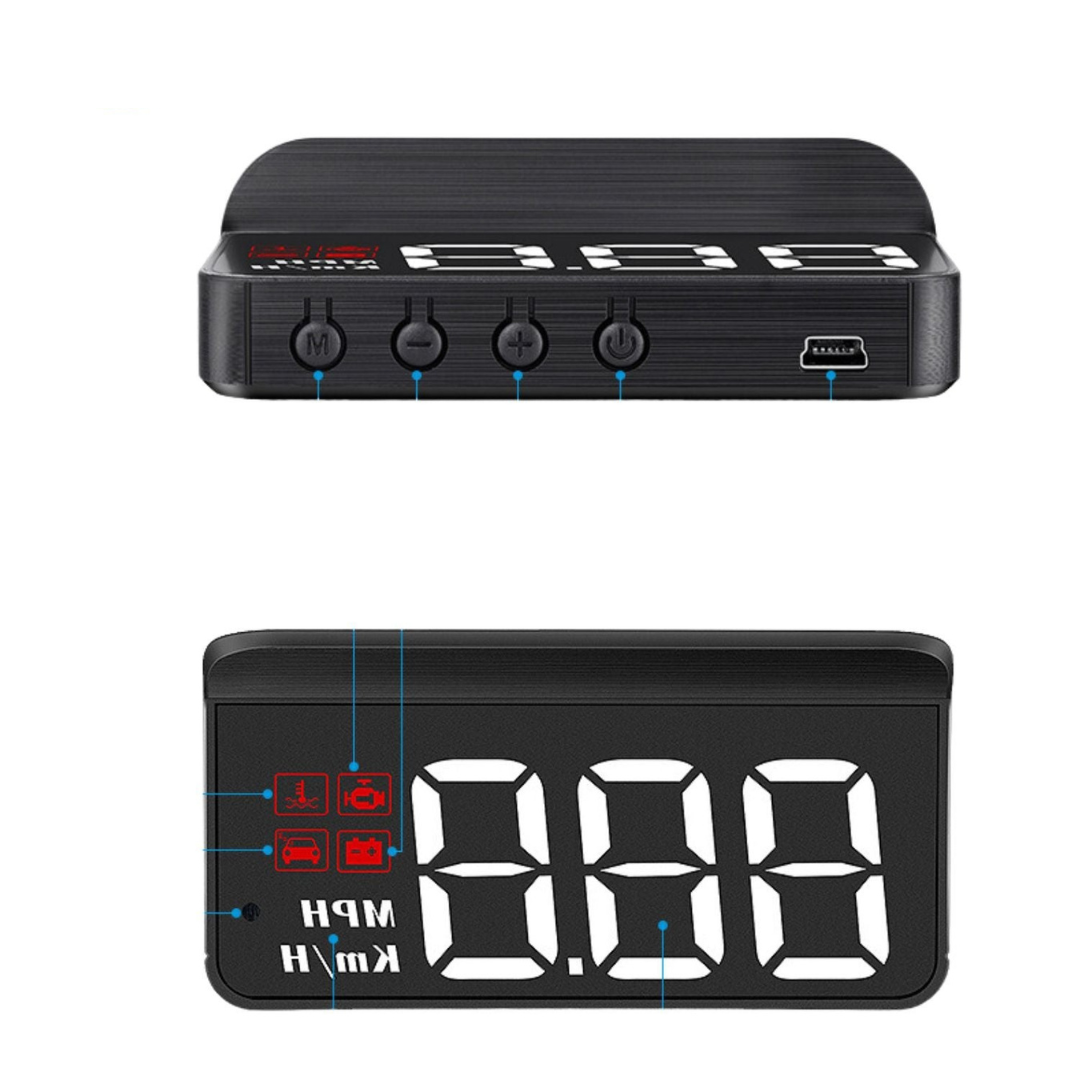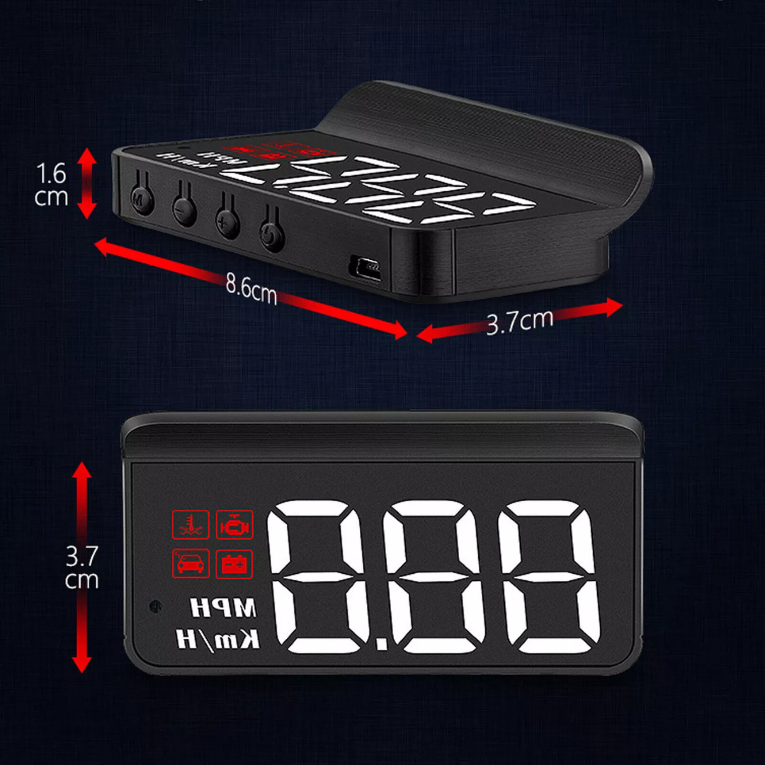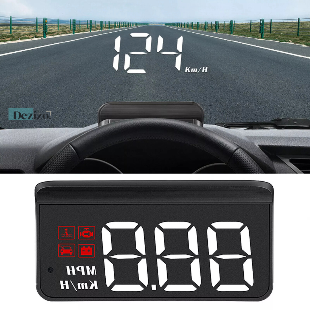 Real-time HUD display - projects speed, fuel level, and other important data directly onto your windshield.