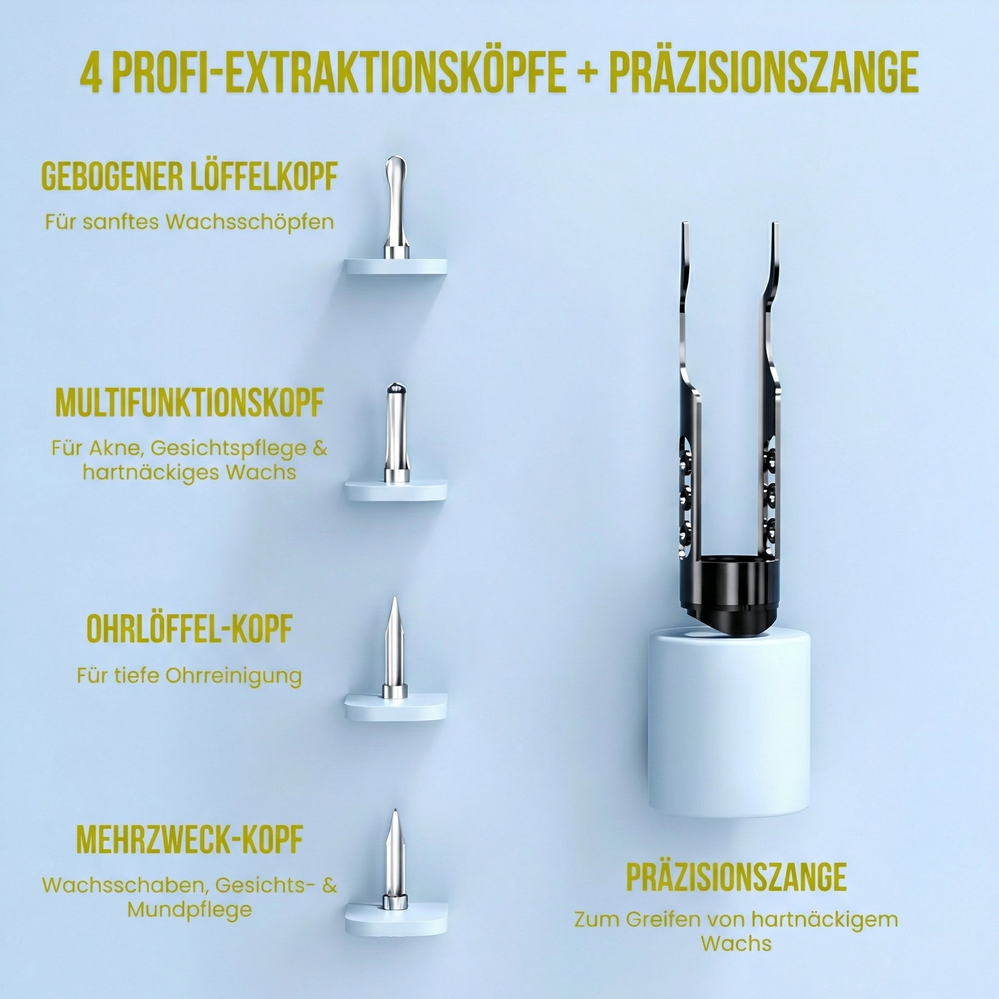 Die HD-Kamera zeigt alles klar, die weichen Silikonspitzen entfernen präzise, ohne Druck und ohne blindes Reinstechen.