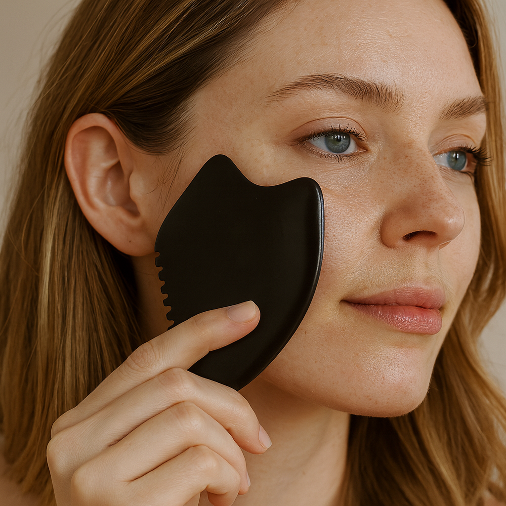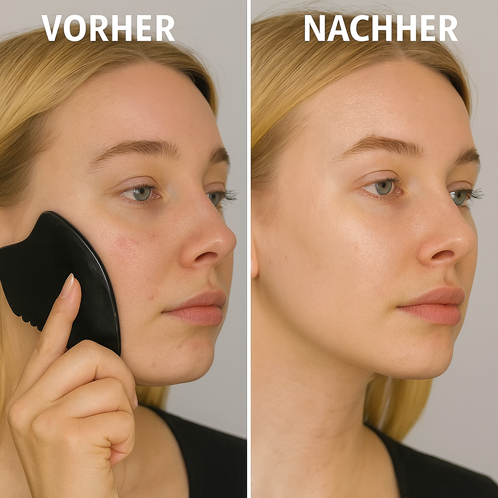 Erfahren Sie, warum Tausende von Frauen, die sich für Hautpflege begeistern, unser Gua Sha Werkzeug lieben. Es ist mehr als nur ein Beauty Accessoire, es ist ein tägliches Selbstpflege Ritual, ein kurzer Moment der Ruhe, der die Mikrozirkulation und die Lymphdrainage fördert. Nur wenige Minuten täglich helfen Ihrem Gesicht, erfrischt, belebt und natürlich strahlend auszusehen.