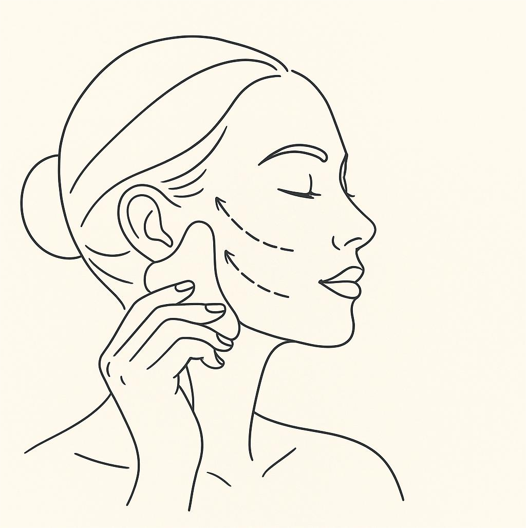Entdecken Sie ein zeitloses Schönheitsritual, das Ihre Haut straffer, strahlender und mühelos jugendlich aussehen lässt. In nur wenigen Minuten pro Tag hilft Ihnen Ihr Gua Sha dabei, Schwellungen zu reduzieren, Ihre natürlichen Konturen sanft zu straffen und zu formen und Verspannungen im Gesicht und Nacken zu lösen.