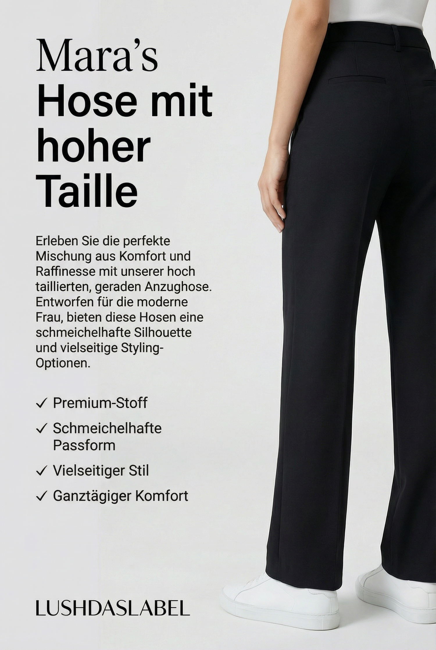 ✨ Für Frauen, die eine betonte Taille und optisch längere Beine möchten, mit einem klaren, modernen Schnitt.