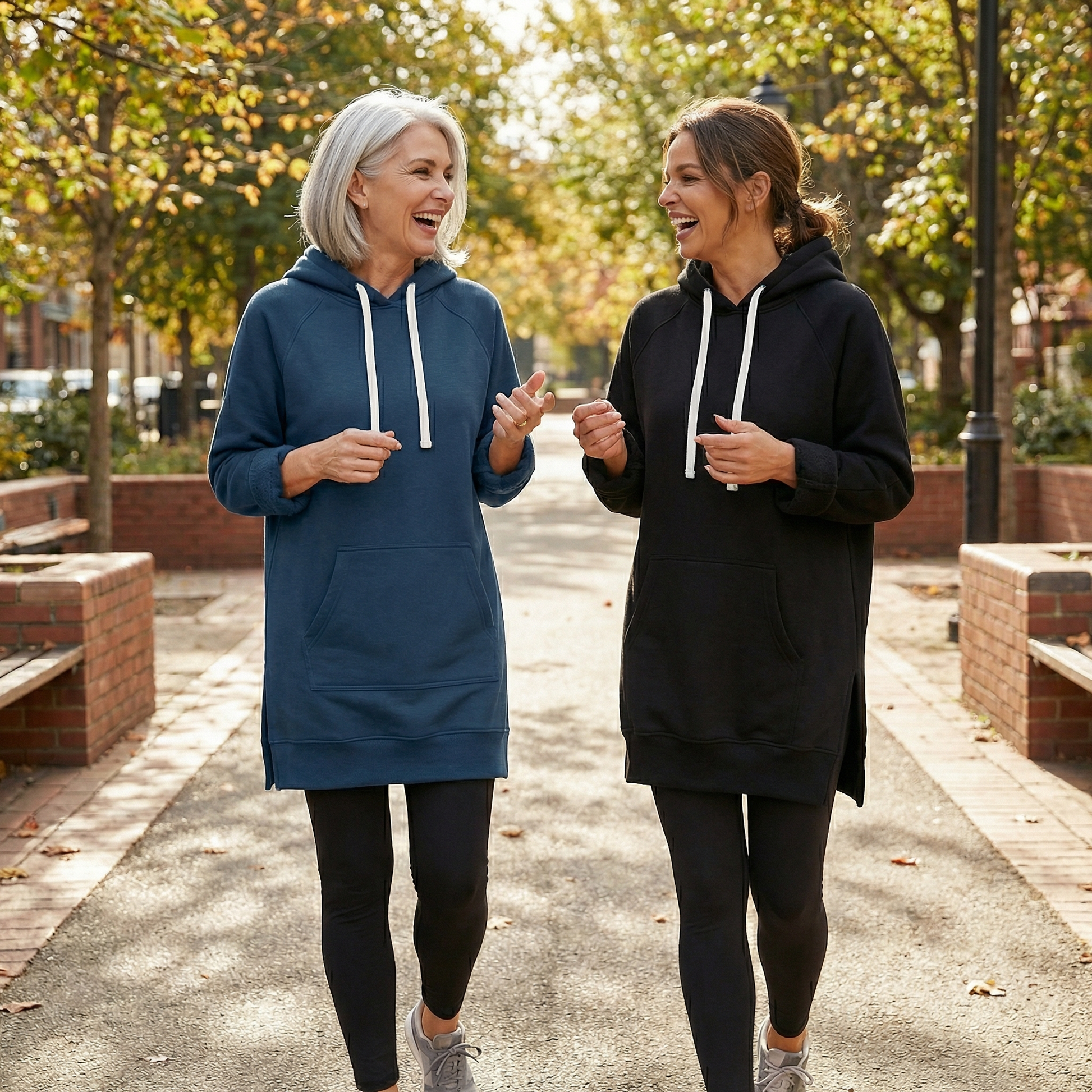 Keine Vorbereitung, kein Aufwand. Das Talitha Kapuzenkleid™ schenkt Ihnen sofort spürbaren Komfort und passt perfekt in Ihren Alltag. Ob zu Hause auf dem Sofa, beim Homeoffice oder unterwegs, es hält angenehm warm, fühlt sich weich auf der Haut an und sorgt den ganzen Tag für ein entspanntes, geborgenes Tragegefühl.
