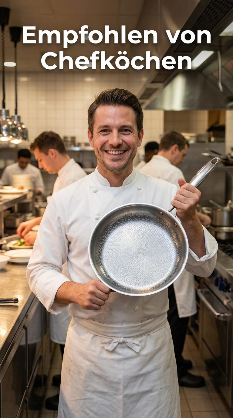 Professionelle Köche schätzen die Titanium Gehammerte Pan Pro für ihre präzise Wärmeverteilung, natürliche Antihaftwirkung und kompromisslose Qualität. Entwickelt für höchste Ansprüche und perfekt für jede Küche zu Hause.